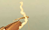 Next tie in the zelon wing by selecting the desired amount and figure 8 wrapping it to the hook shank. Position it so it spreads out evenly to both sides. Secure with 5 tight wraps.