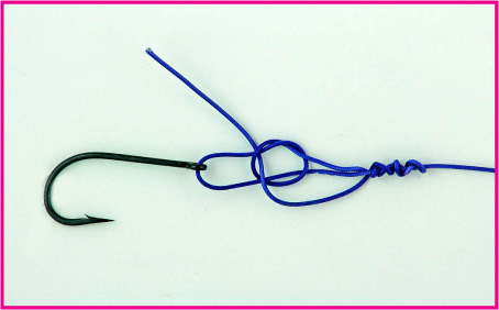 Fly fishing knot used to attach the fly to the tippet; sport fishing knot used to attach the hook/lure to the line. Materials: hook, eye or swivel ring