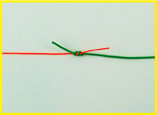 Fly fishing knot used to join together 2 sections of leader; sport fishing knot used to join together line to leader.